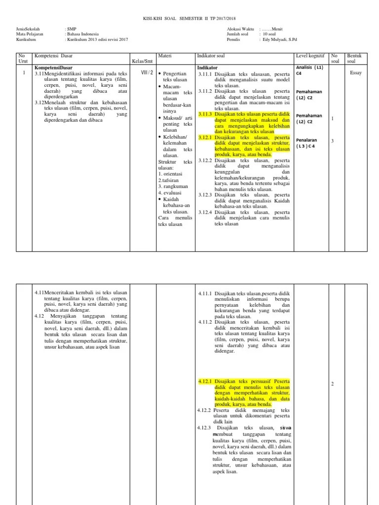 Kisi Kisi Soal Bahasa Indonesia Kelas 8 K13 / Soal Kunci Kisi Pas Bahasa Indonesia Kelas 8 Semester 1 Smp Mts Kurikulum 2013 Tp 2020 2021 Gelap Terang : Sunday december 2 2018 soal ipa kelas 8 semestar sementer .. Terlebih memang untuk bahan yang dijadikan soal uas/pas bahasa indonesia diambil dari materi pelajaran bahasa indonesia kurikulum 2013 bersumber dari buku teks . 1 日前 kisi kisi soal ukk mapel bahasa indonesia kelas x smk sma kurikulum k13 tahun 20162017. Jenis tes bentuk tes jumlah soal Sunday december 2 2018 soal ipa kelas 8 semestar sementer .